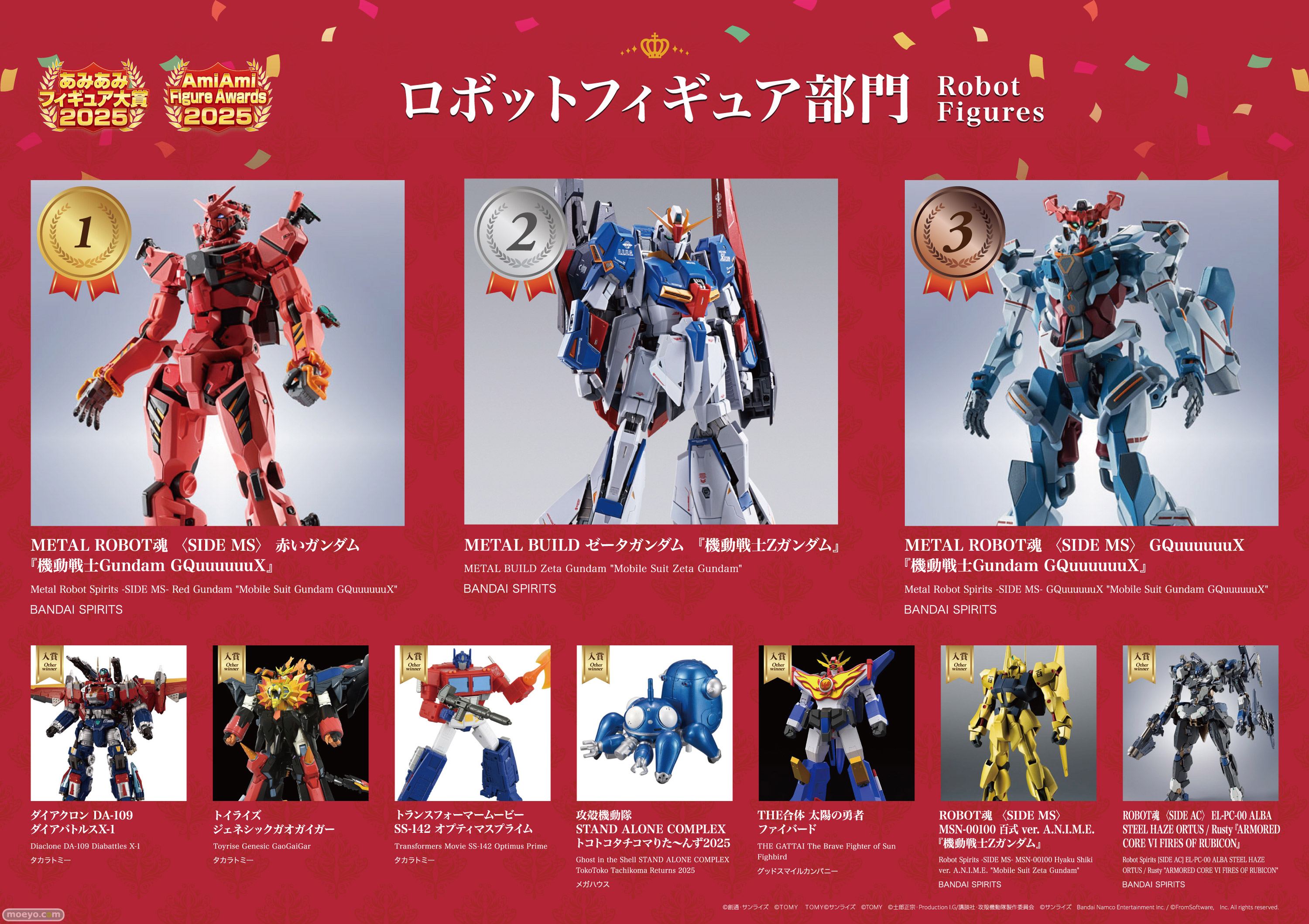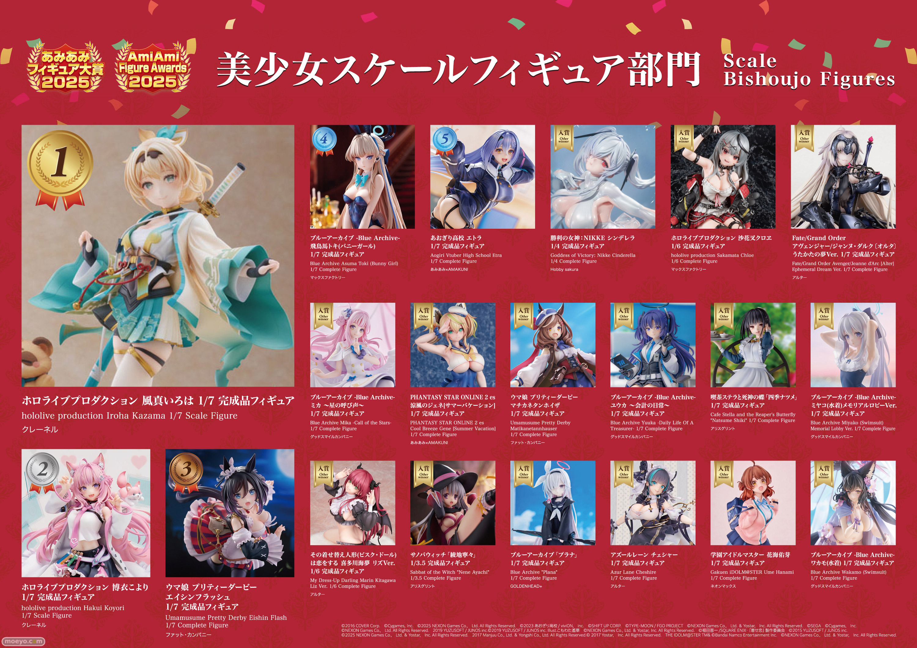 大網株式会社は、「あみあみフィギュア大賞2025」を発表いたします。“2025年に1番売れたフィギュア”を算出。定番の「美少女スケールフィギュア部門」「美少女ミニフィギュア部門」「美少女プラキット部門」「特撮・ヒーローフィギュア部門」に加え、新たに「美少女オリジナルイラスト部門」「美少女アクションフィギュア部門」「美少女オリジナルアクションフィギュア部門」「ロボット部門」を設立。それぞれの1位を「あみあみフィギュア大賞」として選定するとともに、本年も「特別賞」を設置。 全9部門に亘るフィギュアの祭典をお楽しみください。マフィア梶田さん、中村悠一さんによる「わしゃがなTV」で特別番組を公開予定です。【あみあみ】