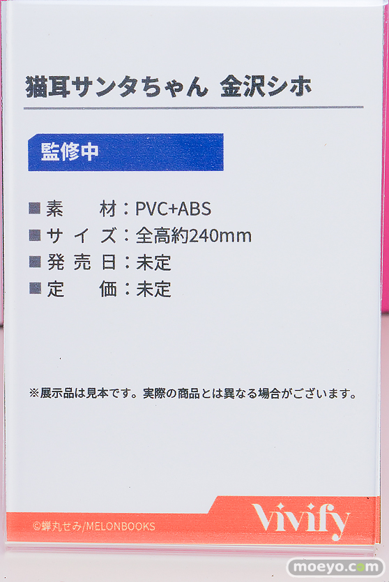 Vivify「猫耳サンタちゃん 金沢シホ」(監修中原型) *掲載の展示アイテムは原則的に監修中や製作中のものとなります。 実際の商品とは若干異なる場合がございますので、予めご了承ください。 撮影:いつもの友人/もんぷち。 文:もんぷち。 関連 ■ワンダーフェスティバル2025 [夏] の記事一覧 ■ワンダーフェスティバル ■Vivify(X) ©蝉丸せみ/MELONBOOKS