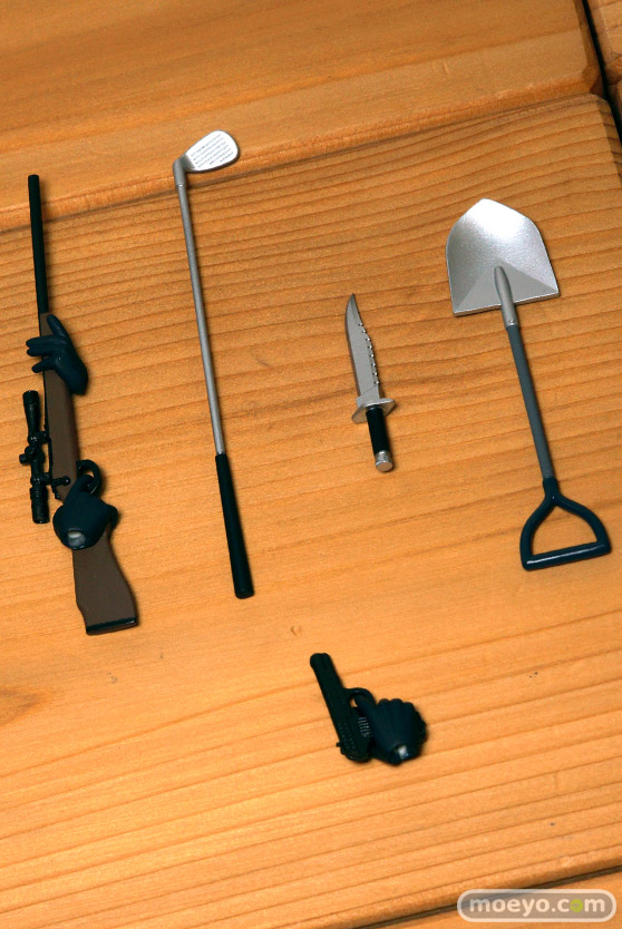 「figma犯人」は、ライフルやナイフをはじめ、多様な凶器パーツが付属し、様々なポーズをとらせる事ができます。