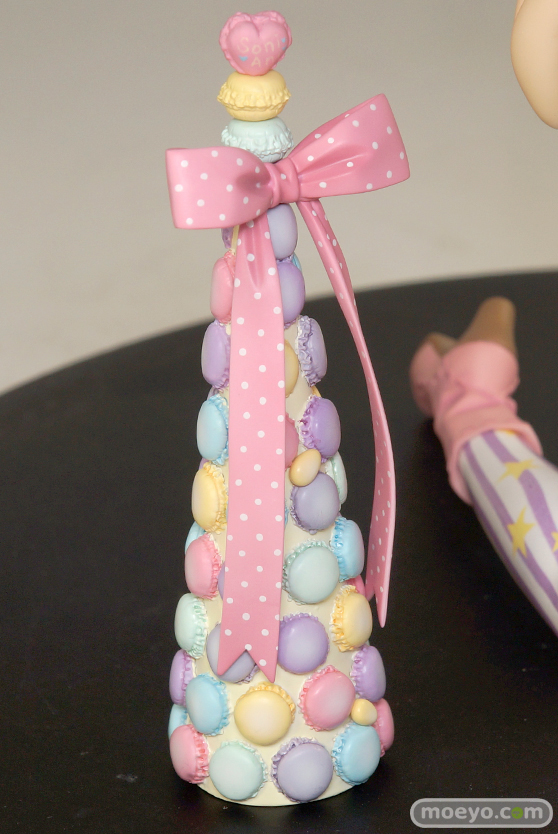 アルファマックスの新作フィギュア「すーぱーそに子 with マカロンタワー」が予約中!【アニメーション『そにアニ』より、店舗用特典のゆーぽん氏描き下ろしイラストをモチーフに、キュートなすーぱーそに子が立体化です!】というもので、原型制作は内嶋靖浩さん(essence.)。その最新の彩色サンプルを見せて頂けましたので、画像レビューとしてお伝えします!
