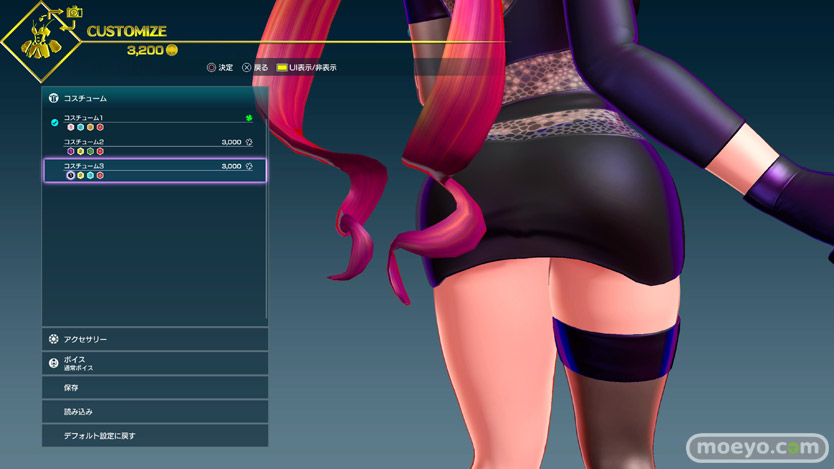 今作はパーティーゲームとしての側面も強いことからか、コスチュームのカスタマイズや撮影などが可能で、そのモード内でキャラクターモデルをいろいろなポーズで見ることも可能です。