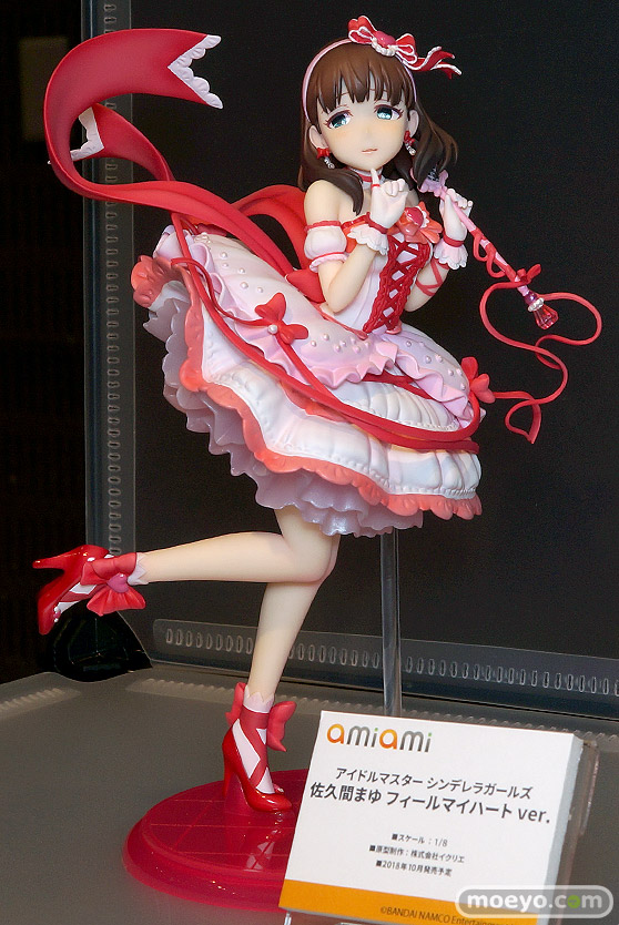 あみあみ新作フィギュア「アイドルマスター シンデレラガールズ 佐久間まゆ フィールマイハートver.」PVCサンプルが初公開!【C3 2018秋】あみあみの新作フィギュア「アイドルマスター シンデレラガールズ 佐久間まゆ フィールマイハートver.」のPVCサンプルが、「第9回カフェレオキャラクターコンベンション」の会場で初公開!『「佐久間まゆ」らしい魅惑的な表情と、ピンクで統一されたキュートな衣装にご注目下さい。多層になっているスカートは、一部にクリアパーツを使用し透明感を表現。』などというもので、原型制作は株式会社イクリエさん。その展示の様子を画像レビューとしてお伝えします!