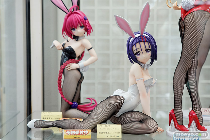 フリーイングの新作フィギュア「B-STYLE To LOVEる-とらぶる- ダークネス 西連寺春菜 バニーVer.」のおそらくPVCと思われる彩色サンプルが、秋葉原のボークスホビー天国で展示!『しっとりとした色っぽさがあふれるバニースーツ姿の彼女があなたを待っています。』というもので、原型制作は梓零さん。その展示の様子を画像レビューとしてお伝えします!