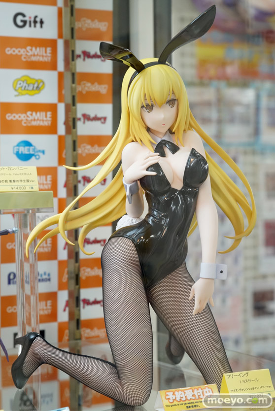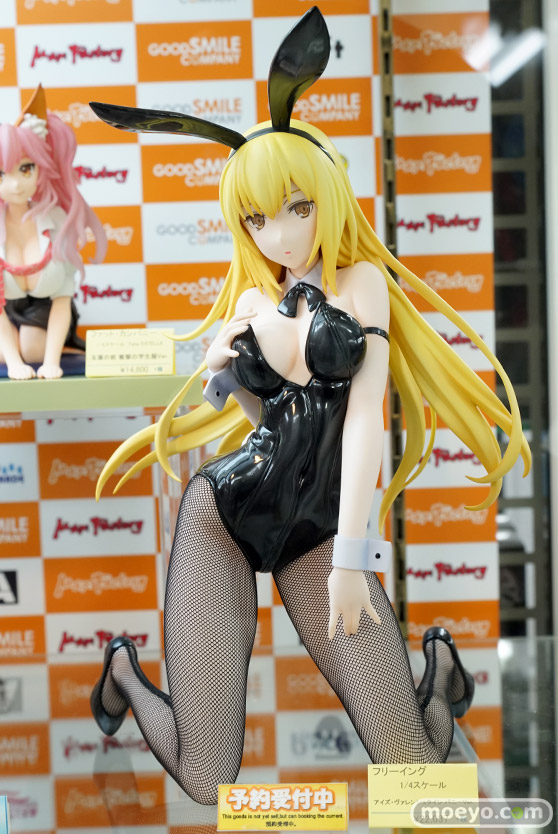 フリーイングの新作フィギュア「B-STYLE ソード・オラトリア アイズ・ヴァレンシュタイン バニーVer.」のおそらくPVCと思われる彩色サンプルが、秋葉原のボークスホビー天国で展示!『1/4スケールのボリュームに布製網タイツを使用し、見ても触れても楽しめる仕様でお届けいたします。バニー姿の剣姫をあなたの部屋へお迎えください!』というもので、原型制作はFREEingさん。制作協力はあます(林檎連盟)さん。その展示の様子を画像レビューとしてお伝えします!