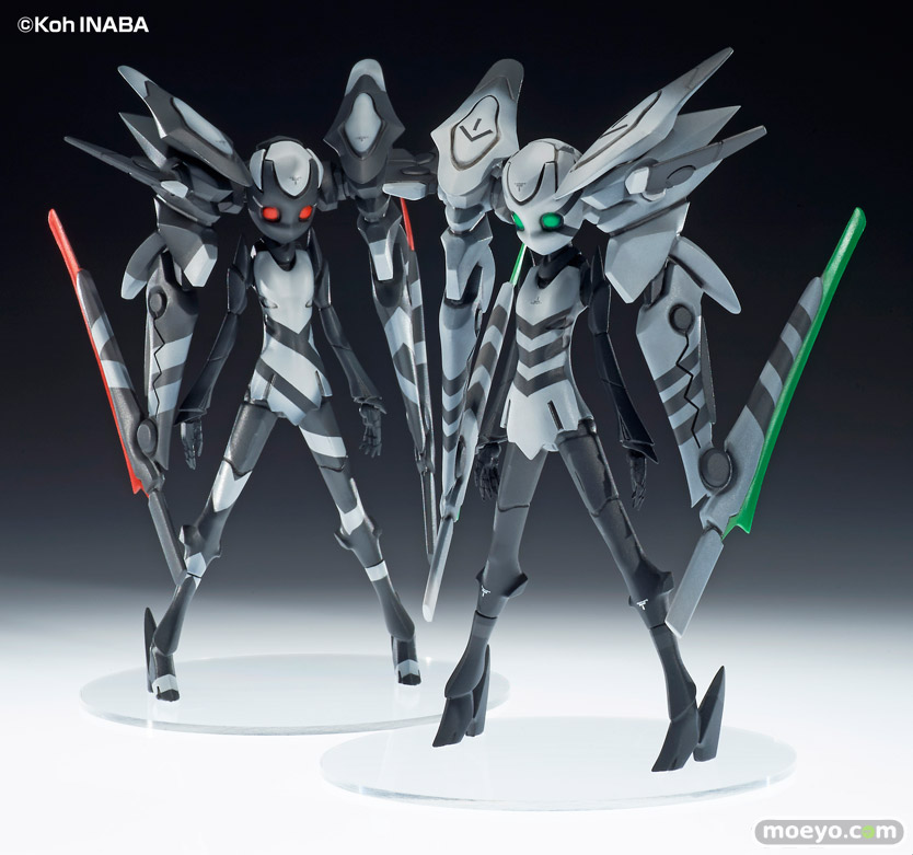 コトブキヤの創作系ロボットプラスチックモデルシリーズ『フレームアームズ』のメカニックデザイナーを担当し、いまもっとも脂が乗っているプロフェッショナルメカニックデザイナーのひとりである稲葉コウ。そんな彼がこっそりと(?)ワンフェスへディーラー参加しはじめ、処女ガレージキット作品として発表したのが、この創作系少女型ロボット『RUDOLF(ルドルフ)』です(※写真には2体写っていますが、この2体はディテールはまったく同一のカラーリングバリエーションです)。