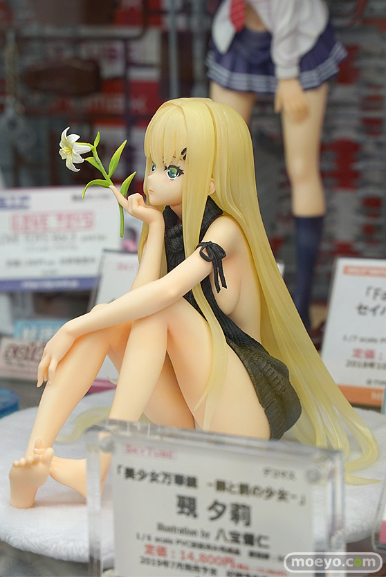 ざっくりしたセーターはキャストオフ可能!スカイチューブ新作エロフィギュア「美少女万華鏡 -罪と罰の少女- 覡夕莉 illustration by 八宝備仁」彩色サンプルがアキバで展示!スカイチューブの新作フィギュア「美少女万華鏡 -罪と罰の少女- 覡夕莉 illustration by 八宝備仁」の彩色サンプルが、秋葉原のボークスホビー天国で展示!『八宝備仁氏描き下ろしのタペストリーイラストをモチーフに、セーター姿で花を片手にお座りポーズの夕莉を立体化いたしました。柔らかそうなボディラインと衣装の素材感の対比、透明感のある瞳など、優等生の美しい姉・夕莉の魅力を余すところなく再現しています。』というもので、ざっくりしたセーターはキャストオフ可能!原型制作はEGGさん。その展示の様子を画像レビューとしてお伝えします!(アダルトフィギュアとなります!18歳未満の方は閲覧をお控えください。)