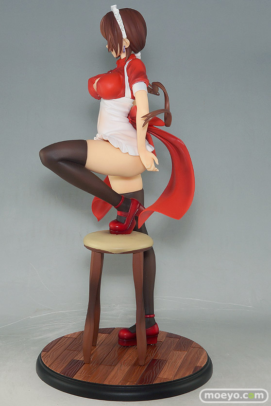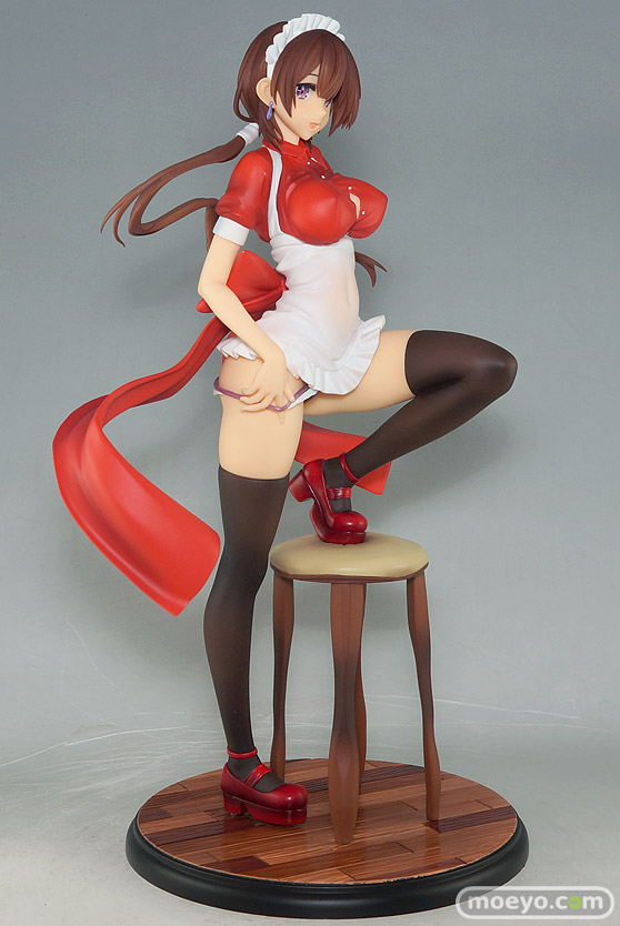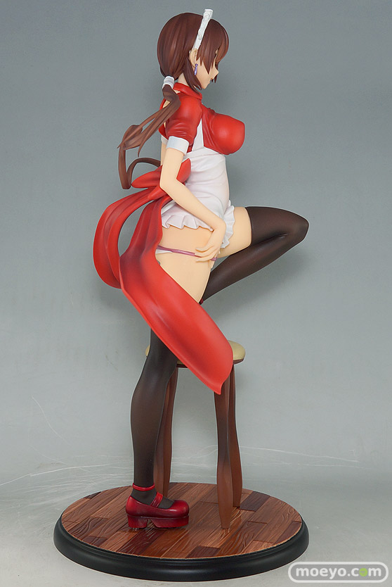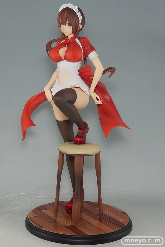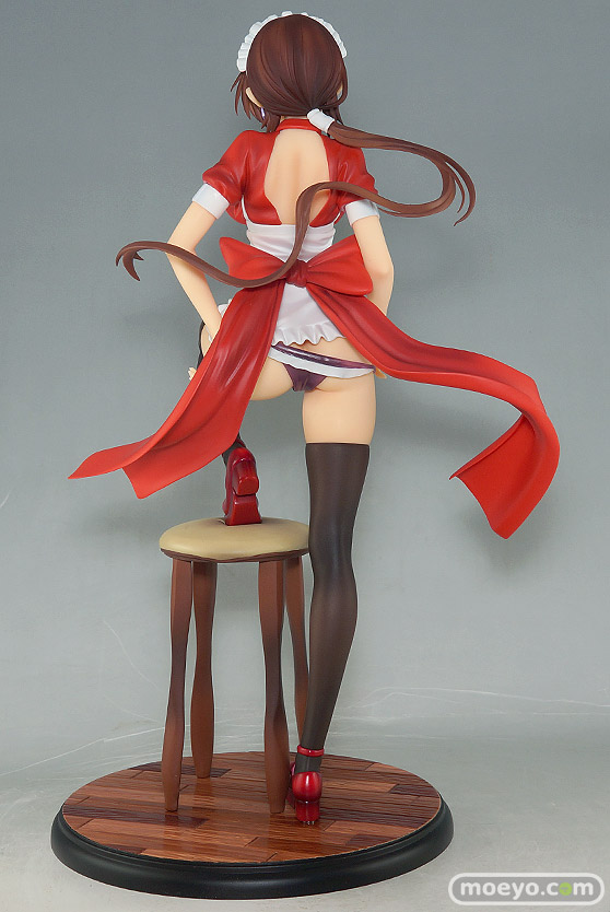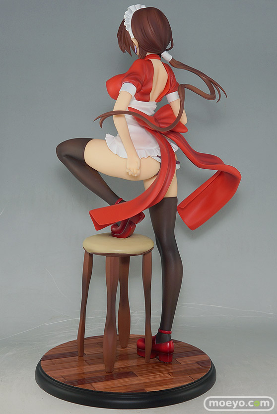 身体にぴったりと張り付くような赤白のメイド服、こぼれそうな胸元、むっちりとした太ももなどの質感の詰まったボディや、翻るリボンと美しく流れる髪の造形、両手にかけたパンツなど見どころ満載です。