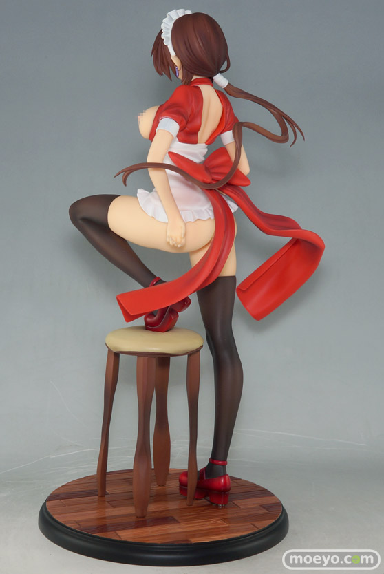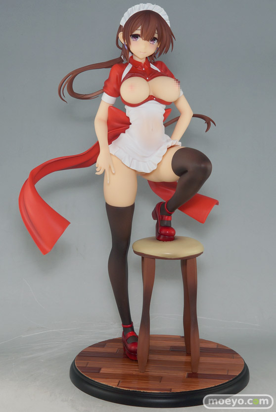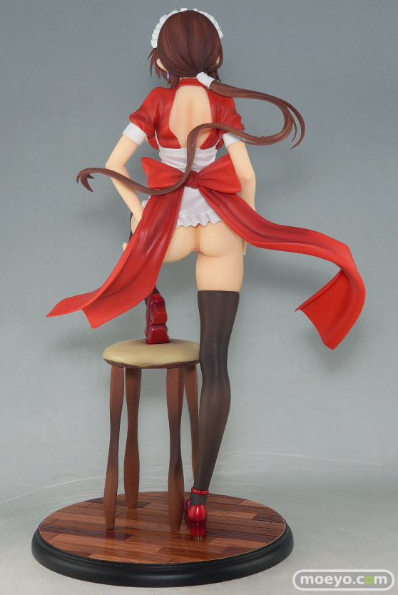 身体にぴったりと張り付くような赤白のメイド服、こぼれそうな胸元、むっちりとした太ももなどの質感の詰まったボディや、翻るリボンと美しく流れる髪の造形、両手にかけたパンツなど見どころ満載です。