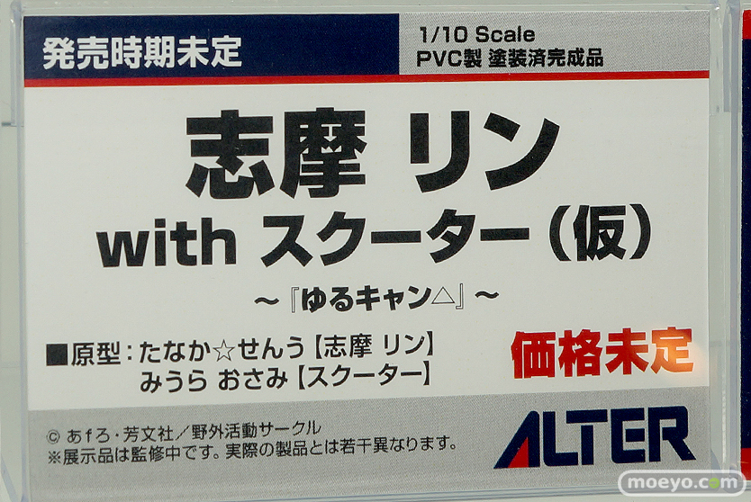 スクーターに腰かけほっと一息な瞬間を立体化!アルター新作フィギュア「ゆるキャン△ 志摩リン with スクーター(仮)」監修中原型が展示!【メガホビ2018秋】アルターの新作フィギュア「ゆるキャン△ 志摩リン with スクーター(仮)」の監修中原型が、「メガホビEXPO 2018 Autumn」の会場で展示!スクーターに腰かけ、缶の飲み物を手にほっと一息な瞬間を立体化したもので、原型制作は志摩リンがたなか☆せんうさん。スクーターがみうら おさみさん。その展示の様子を画像レビューとしてお伝えします!
