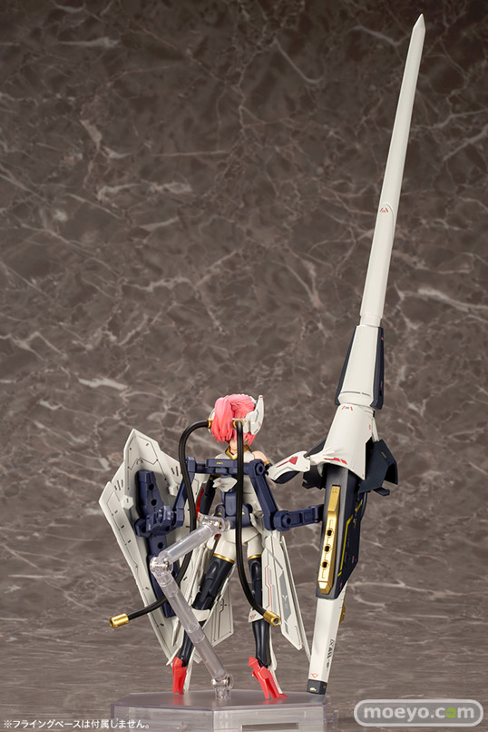 ・ボリューム満点のロングランスとラージシールドは背中から伸びるアームで保持。更にサポートとして武器を支えるベースも付属します。