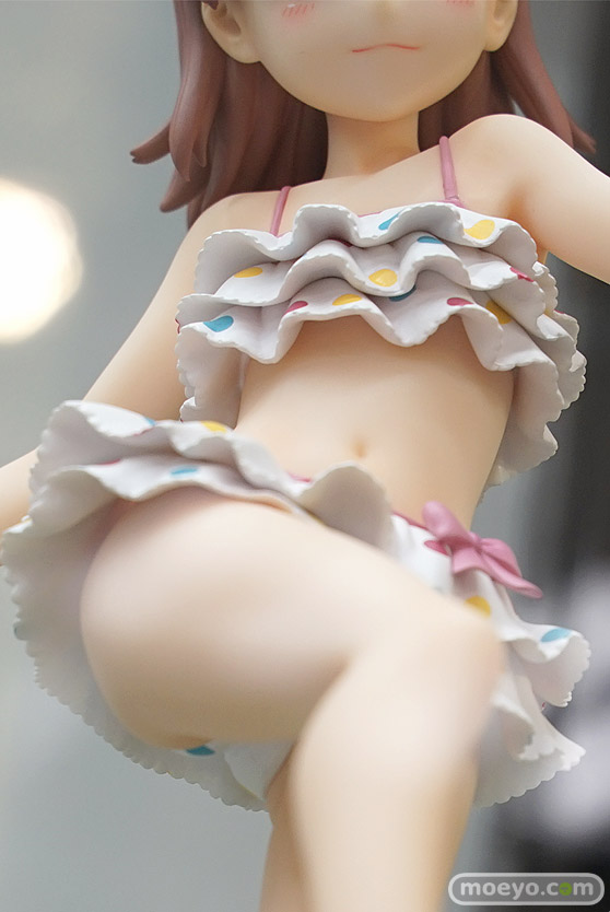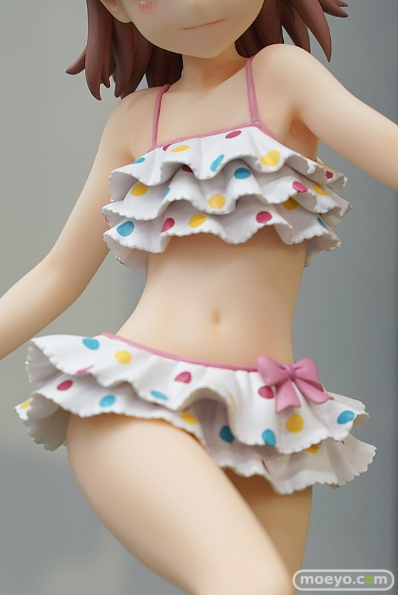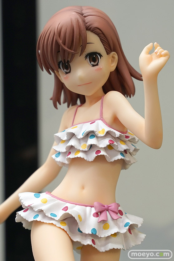 2019年3月に発売予定のコトブキヤ新作フィギュア「とある科学の超電磁砲 御坂美琴-ビーチサイド- リニューアルパッケージ」のPVCサンプルが、コトブキヤ秋葉原館で展示!『BD&DVDのイラストをモチーフに、カラフルな水玉模様がキュートな水着姿で立体化。“美琴”のスラリとした身体に、大きなフリルが重なった水着がよく似合います。台座はビーチサイドを再現。水の流れや水しぶきをクリアパーツでリアルに表現しました。』というもので、原型制作は右藏さん。その展示の様子を画像レビューとしてお伝えします!