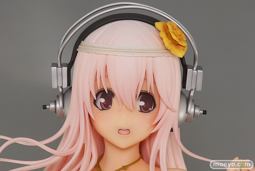 オーキッドシードの新作フィギュア「すーぱーそに子 さまーばけーしょんver.」が予約受付中です!『躍動感のあるなびく髪やちょっと困った顔のような愛らしい表情は細部まで造りこまれていて、思わずうっとりしてしまします。重力まで感じさせるような大迫力の巨乳ややわらかさが伝わってくるようなヒップとビキニラインの食い込み等、ボリューム満点。そして、健康的な魅力のウエスト周りなど、リアルな仕上がりの造型になっています。』というもので、原型制作はモヒオさん、蘭丸さん。その最新の彩色サンプルを見せて頂けましたので、画像レビューとしてお伝えします!