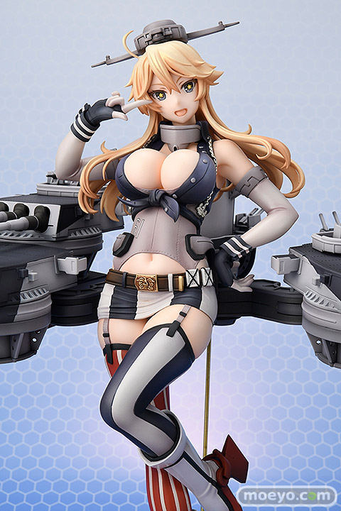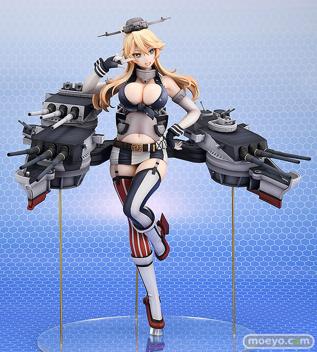 大人気ブラウザゲーム『艦隊これくしょん – 艦これ -』より、Iowa級戦艦「Iowa(アイオワ)」が迫力の 1/7 スケールフィギュアとなって AMAKUNI より登場。目くばせが Cute なオリジナルポーズで立体化しました。圧巻のボリュームで再現した艤装は主砲の回転および砲身の上下可動が可能。艤装パーツはボディからの着脱が可能となっており、艤装なしの【軽装 Ver.】でもディスプレイをお楽しみいただけます。