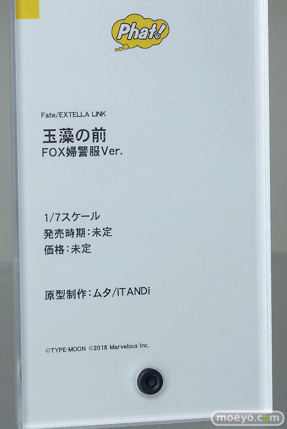ファット・カンパニーの新作フィギュア「Fate/EXTELLA LINK 玉藻の前 FOX婦警服Ver.」の監修中原型が、「ワンダーフェスティバル 2019[冬]」の会場で展示!かわいらしい婦警さん姿の玉藻の前を立体化したもので、原型制作はムタさん、iTANDiさん。その展示の様子を画像レビューとしてお伝えします!