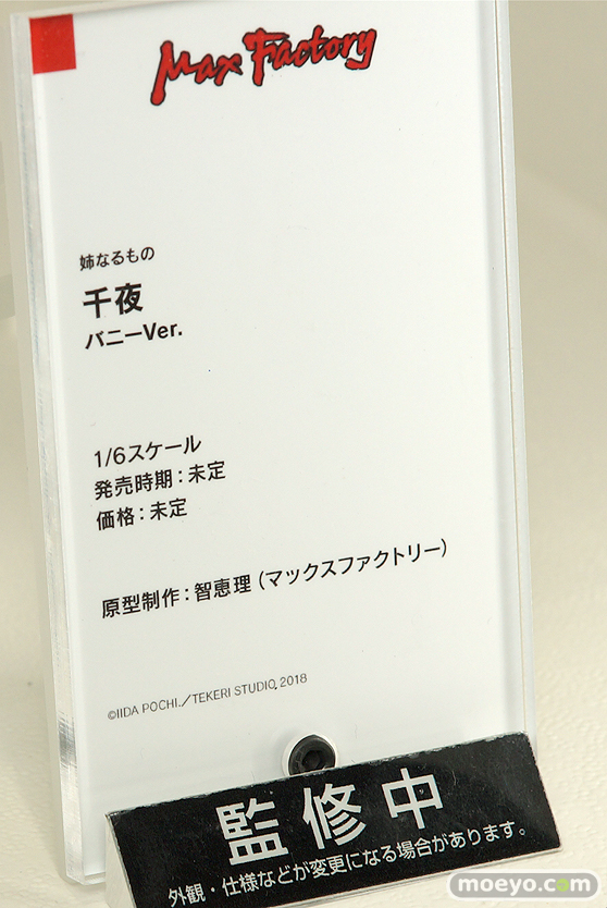 むっちりボディと切れ込み抜群バニースーツ!マックスファクトリー新作フィギュア「姉なるもの 千夜 バニーVer.」監修中原型が展示!【WF2019冬】マックスファクトリーの新作フィギュア「姉なるもの 千夜 バニーVer.」の監修中原型が、「ワンダーフェスティバル 2019[冬]」の会場で展示!千夜のむっちりとしたわがままボディを切れ込み抜群かつ乳隠し部分が危うすぎるエロすぎバニースーツ姿で立体化!原型制作は智恵理(マックスファクトリー)さん。その展示の様子を画像レビューとしてお伝えします!