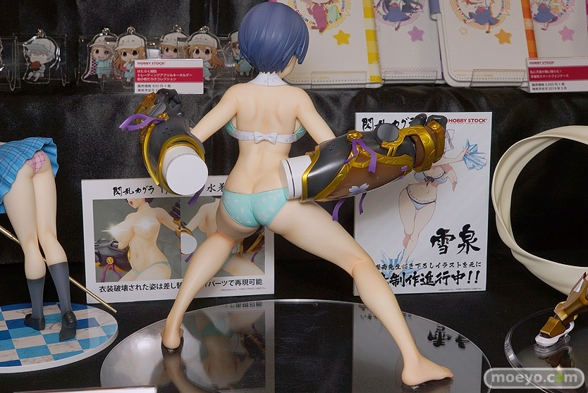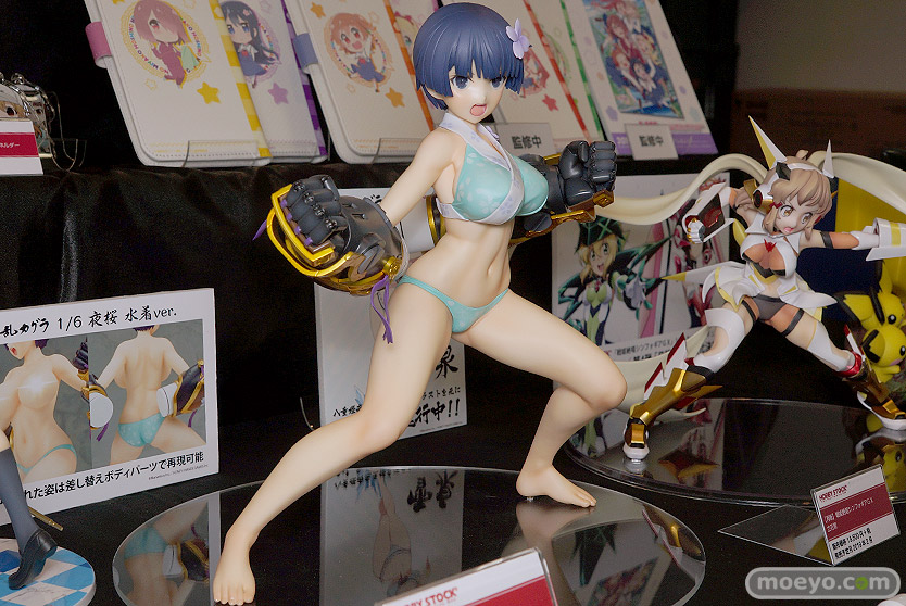 2019年8月発売予定のホビーストック新作フィギュア「閃乱カグラ 夜桜 水着ver.」の彩色サンプルが、「2019冬 ホビーメーカー合同展示会」の会場で展示!『『閃乱カグラ』のフィギュアとしては初となる、キャラクターデザインを担当する八重樫南先生の描き下ろしイラストを元に立体化。彼女の武器であるサイズ可変の手甲は迫力の大きさで造形。工芸品のような質感豊かな彩色も見所です。』というもので、製品版ではボディパーツの差し替えでぽろり状態も!原型制作はあじけんさん。彩色はわんだいさん。制作協力はウイングさん。その展示の様子を画像レビューとしてお伝えします!