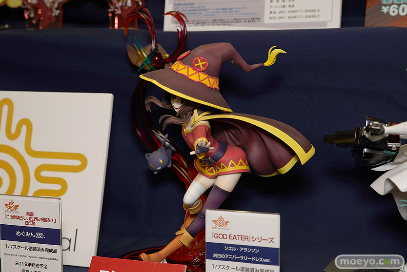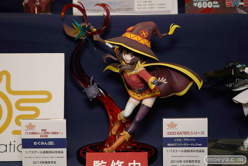 ソル・インターナショナルの新作フィギュア「映画 この素晴らしい世界に祝福を!紅伝説 めぐみん 爆裂魔法ver.」が予約受付開始!『今回の商品は同シリーズの大人気ヒロイン「めぐみん」を、おなじみ爆裂魔法を放つダイナミックな姿で立体化したスペシャル仕様のフィギュアとなります!特筆すべきはまずその大きさ!めぐみんの放つ爆裂魔法のイメージを特大サイズのエフェクトパーツで表現しました!本体よりも大きな魔法の渦は迫力満点!』というものです!「2019冬 ホビーメーカー合同展示会」の会場で展示されていた彩色サンプルの様子を、画像レビューとしてお伝えします!
