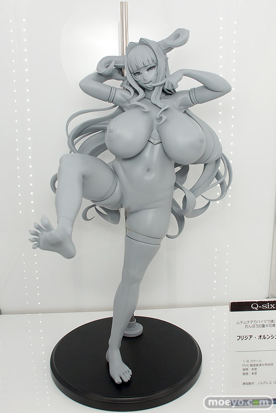 ほぼ全裸で挑発的な足あげポーズ!Q-six新作エロフィギュア「フリジア・オルンシュタイン」監修中原型が展示!【WF2019冬】Q-sixの新作エロフィギュア「フリジア・オルンシュタイン」の監修中原型が、「ワンダーフェスティバル 2019[冬]」の会場で展示!DWARFSOFTのエロゲー「ムチムチデカオパイマラ喰い魔王様とおんぼろ四畳半同棲生活」のヒロイン「フリジア・オルンシュタイン」を、ほぼ全裸で挑発的な足あげかつMOLOなエロエロポーズにて立体化したもので、原型制作はノルグレコさん。その展示の様子を画像レビューとしてお伝えします!(アダルトフィギュアとなります!18歳未満の方は閲覧をお控えください。)