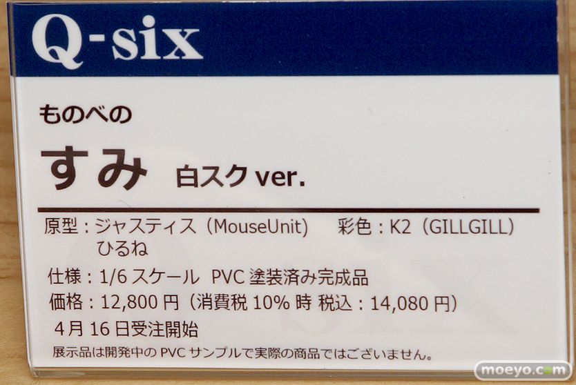 「宮沢模型 第43回 商売繁盛セール」会場で見かけた新作フィギュアレポート01「グッドスマイルカンパニー」「ウェーブ」「Q-six」「コトブキヤ」「ユニオンクリエイティブ」「クルシマ」「わんだらー」編本日2019年4月9日に、業者向け内覧会となる「宮沢模型 第43回 商売繁盛セール」が開催されました!今回もお邪魔させていただくことが出来ましたので、会場で見かけた美少女系フィギュアを中心に、まずはざっくりと全部で4回に分けて会場の様子をお伝えします!こちらでは「グッドスマイルカンパニー」「ウェーブ」「Q-six」「コトブキヤ」「ユニオンクリエイティブ」「クルシマ」「わんだらー」の7ブースの様子を。画像はQ-sixさんの「ものべの すみ 白スク ver.」。