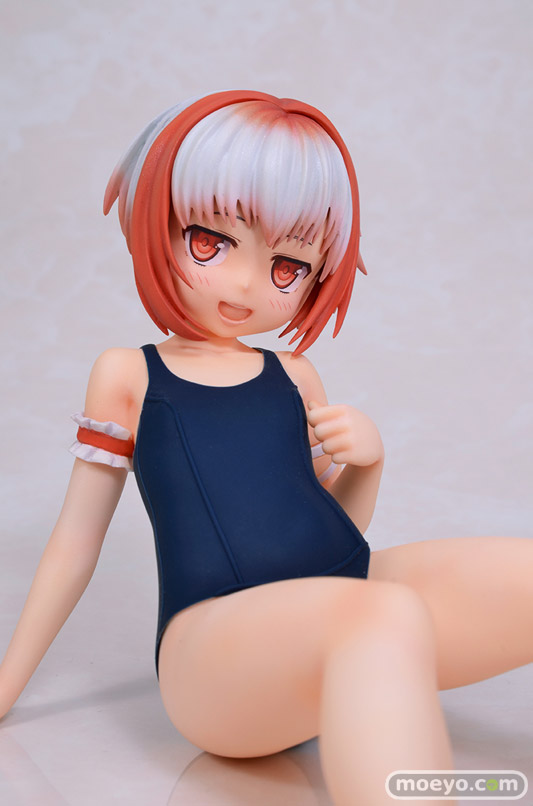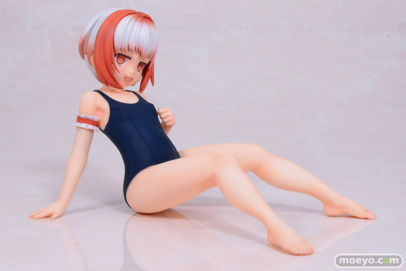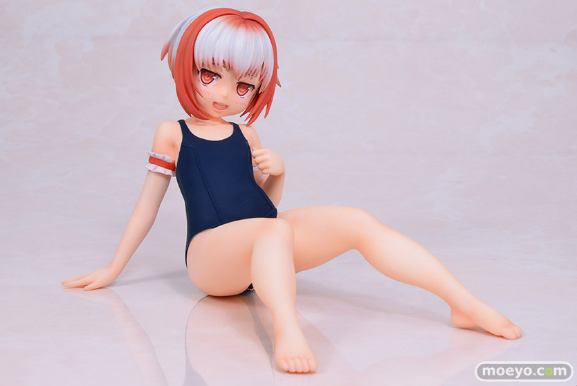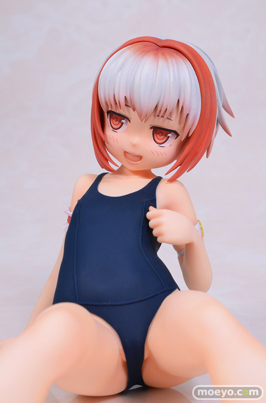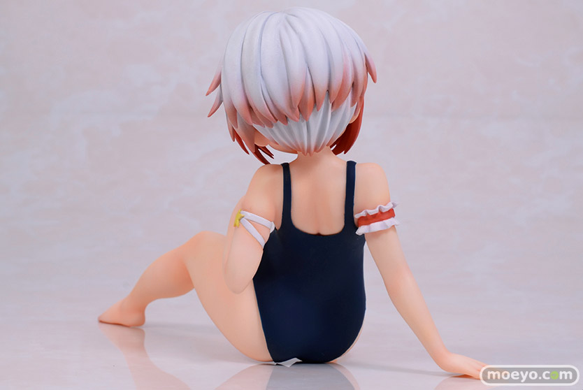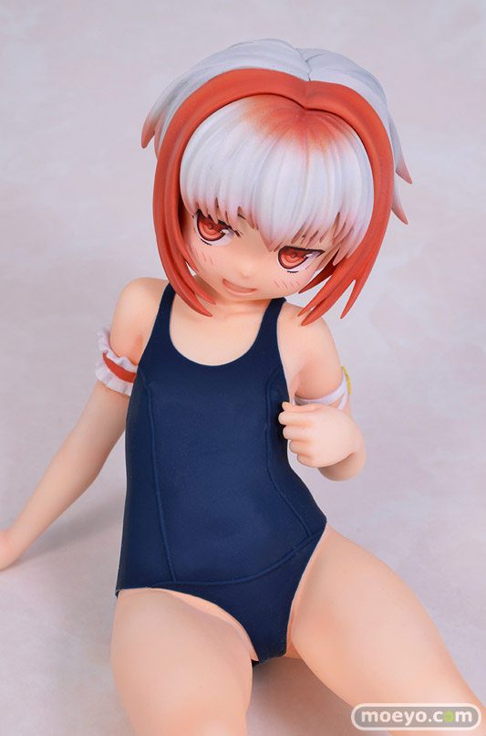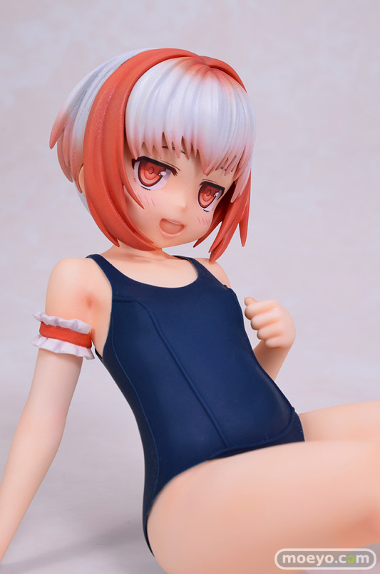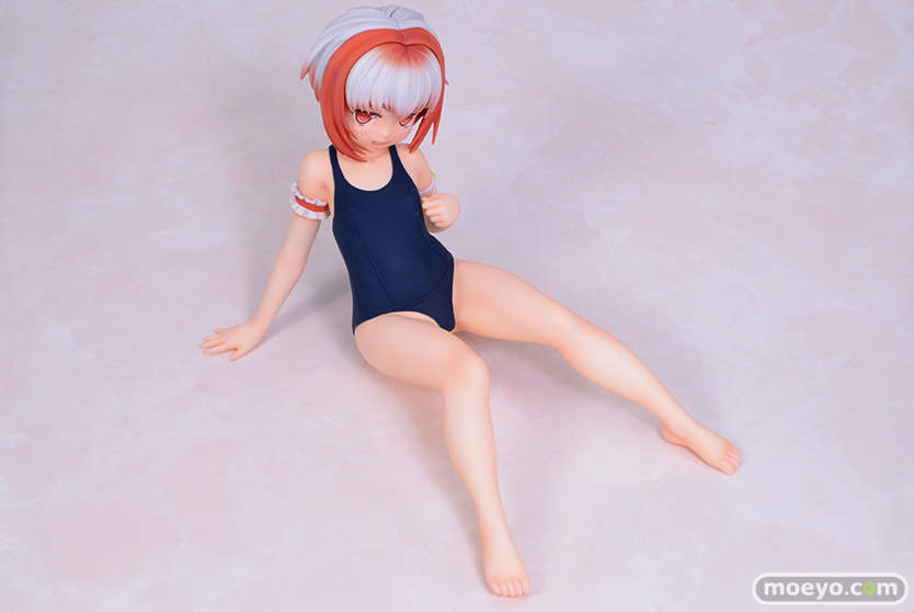 未成熟で華奢なボディラインを原型師ジャスティスの手により忠実に立体化。オーソドックスな紺色のスクール水着からのぞく柔肌、鮮やかな色彩の紅白髪など、