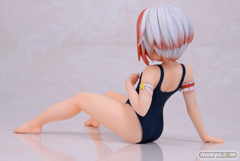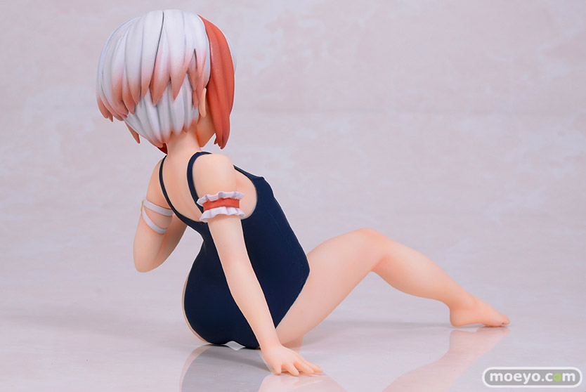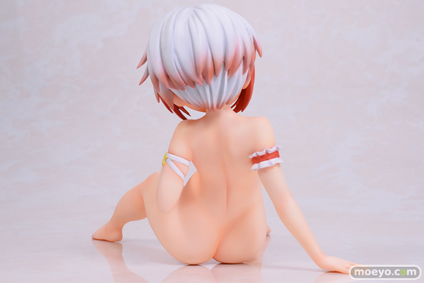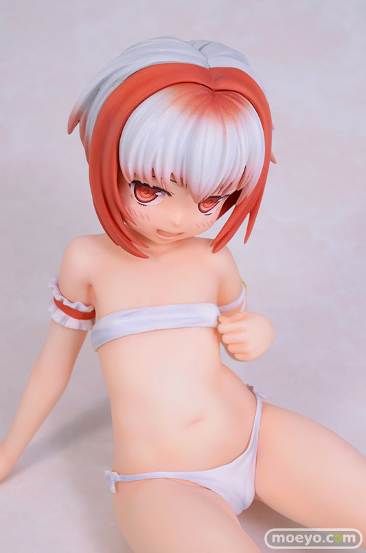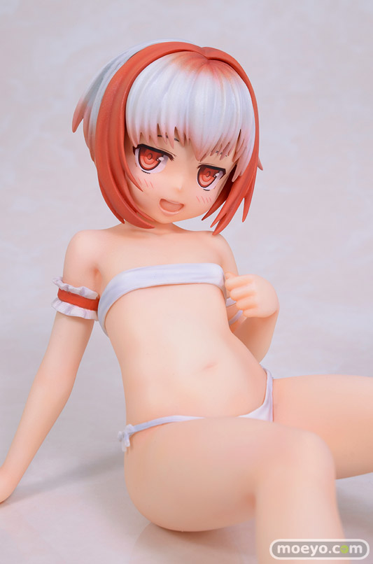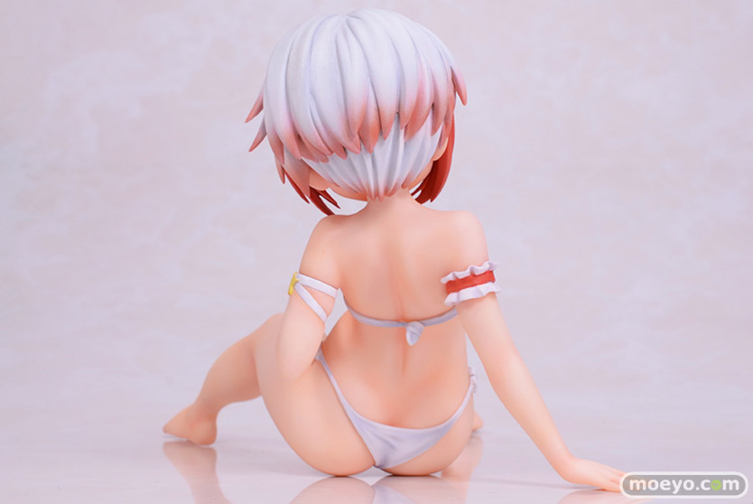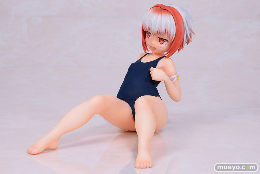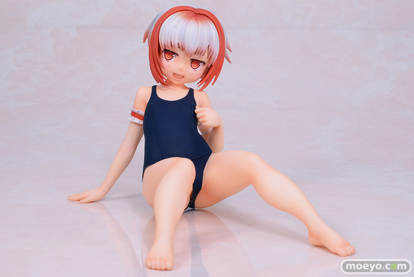 未成熟で華奢なボディラインを原型師ジャスティスの手により忠実に立体化。オーソドックスな紺色のスクール水着からのぞく柔肌、鮮やかな色彩の紅白髪など、