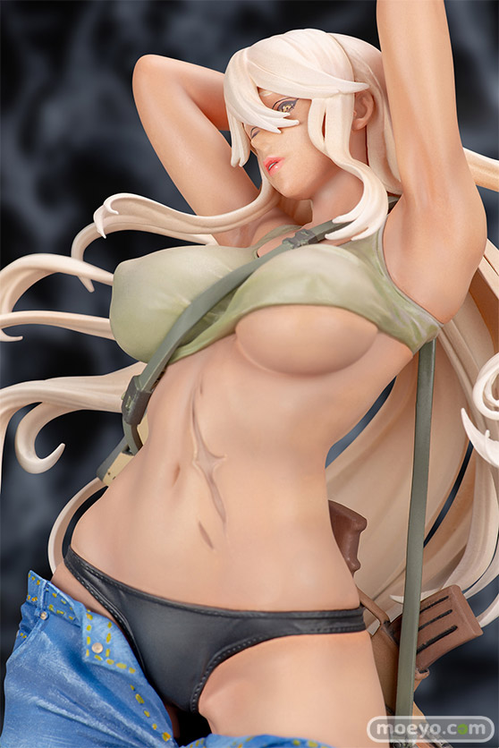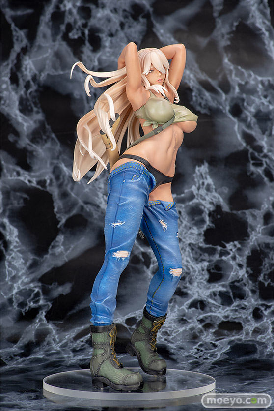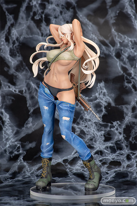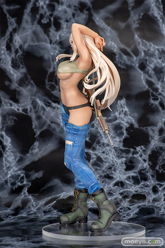 本物そっくりに細部まで造形された脱ぎかけのダメージジーンズやブーツ、さらに肩から掛けた銃器リアルさを演出!大ボリュームの「久我アサカ」を是非ご堪能ください。
