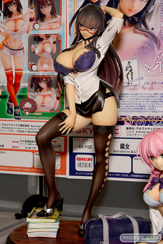ばん!さん描き下ろしのエロ女教師!スカイチューブ新作エロフィギュア「綾女 illustration by ばん!」彩色サンプルが展示!【宮沢展示会43】スカイチューブの新作エロフィギュア「綾女 illustration by ばん!」の彩色サンプルが、「宮沢模型 第43回 商売繁盛セール」の会場で展示!『妖しい微笑みを浮かべ、挑発的なポージングでこちらを見つめる【綾女】を、美麗な原画の魅力のままに再現いたしました。繊細なレース下着に覆われたはち切れんばかりの胸元や、太腿部分の絶対領域、セクシー雑誌パーツ上に置かれた足元からしなやかに延びる肉感的な脚線美など、ボディの質感造形にもこだわりました。』というもので、製品版では衣服はもちろんキャストオフ可能なほか、小道具パーツや別表情パーツなどでいわゆる「ふたなり」などの豊富なスタイルが再現可能!その展示の様子を画像レビューとしてお伝えします!(アダルトフィギュアとなります!18歳未満の方は閲覧をお控えください。)