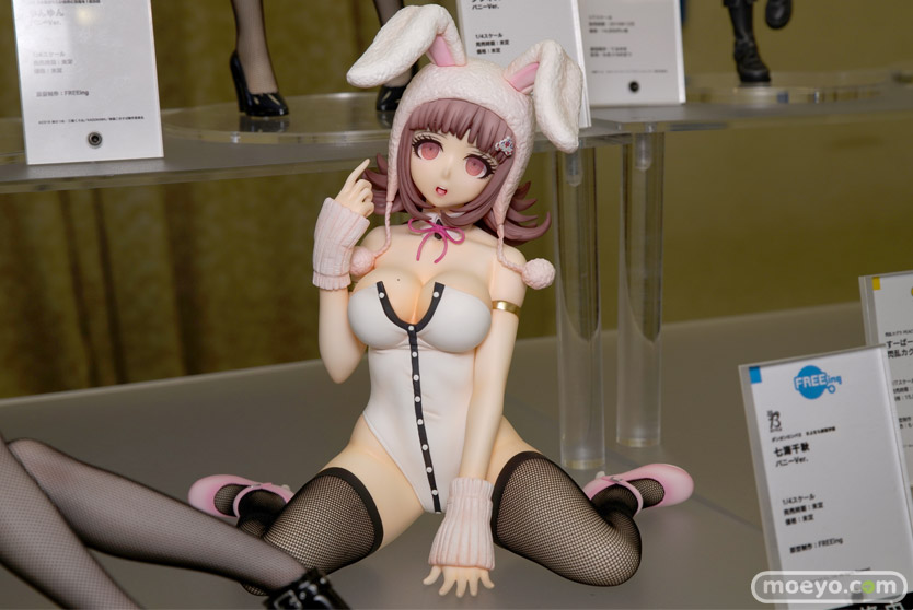 超高校級のウサ耳バニーで登場!フリーイング新作美少女フィギュア「B-STYLE スーパーダンガンロンパ2 さよなら絶望学園 七海千秋 バニーVer.」予約受付開始!フリーイングの新作美少女フィギュア「B-STYLE スーパーダンガンロンパ2 さよなら絶望学園 七海千秋 バニーVer.」が予約受付開始!『「七海千秋」らしい、ふわふわのウサ耳帽子と萌え袖が特徴的なオリジナルバニー衣装!ニーソックスには布製網タイツを使用しています。ご案内済みの「霧切響子 バニーVer.」(別売)と対照的に白とピンクを基調としたデザイン。眠そうな表情はキャラクターの魅力を再確認させてくれます!』というもので、原型制作はFREEingさん。「宮沢模型 第43回 商売繁盛セール」の会場で展示されていた彩色サンプルの様子を、画像レビューとしてお伝えします!
