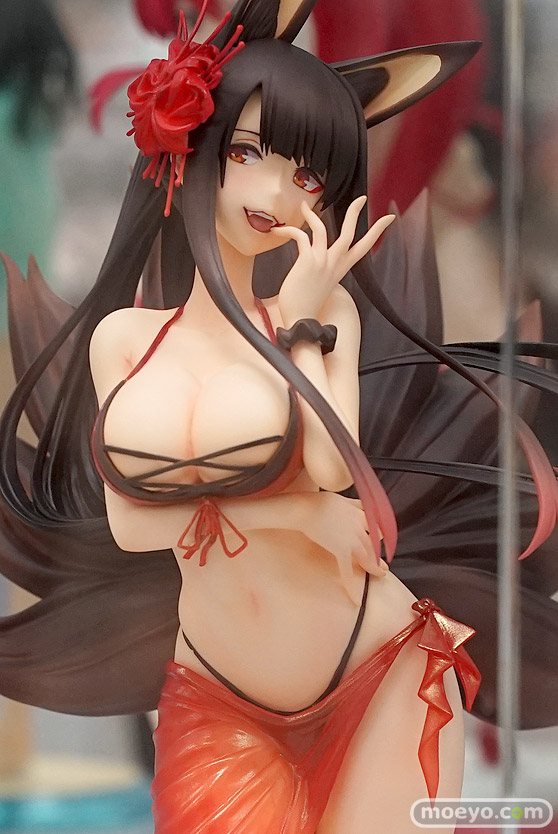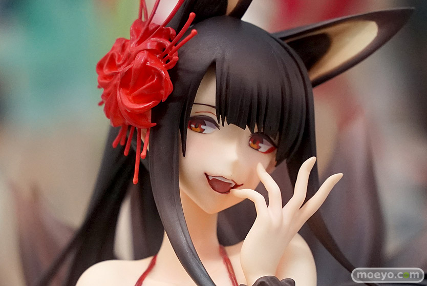 ウェーブの新作美少女フィギュア「ドリームテック アズールレーン 赤城[楽園の彼岸花]」の彩色サンプルがあみあみ 秋葉原ラジオ会館店で展示!『口元にかかる小指、妖艶な微笑み、おおきくやわらかそうな胸を腕で支えた姿がとても魅力的に仕上がっております。しなやかに流れる髪、ウエストから太ももにかけてS字を描く腰つき、後姿の九尾からわずかにのぞくお尻のライン、ビキニの腰紐にかかる繊細な指先の仕草など見どころ満載です。』というもので、製品版ではパレオがキャストオフ可能!原型制作は小川陽三さん。その展示の様子を、画像レビューとしてお伝えします!