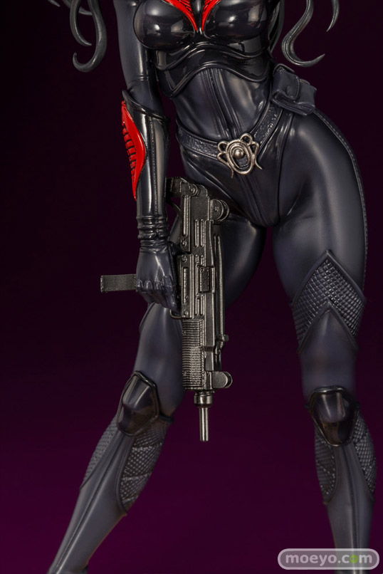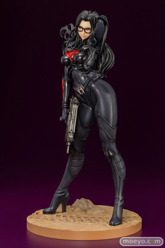 コトブキヤ新作美少女フィギュア「G.I. JOE美少女 バロネス」が予約受付開始!『過激なインテリジェンスを得意とし、多数の武器を使いこなし、様々なビークルを自在に駆る彼女を、その特徴的なロングヘアーをかき上げ幻惑するようなポージングで立体化。武器商人「デストロ」が供給した秘密兵器を使用するコブラらしく、ボディスーツにはG.I. JOEチームとは、また異なる形状の表面ディテールを追加。独自解釈で更なるディテールアップが施されました。 さらに彼女の得意武器の一つであるサブマシンガンが付属します』という、山下しゅんやさん描き下ろしコンセプトアートをもとに立体化したもので、原型制作は毒島孝牧(ブスジマックス)さん。そのサンプルの様子を、画像レビューとしてお伝えします!