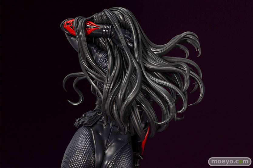 過激なインテリジェンスを得意とし、多数の武器を使いこなし、様々なビークルを自在に駆る彼女を、その特徴的なロングヘアーをかき上げ幻惑するようなポージングで立体化。