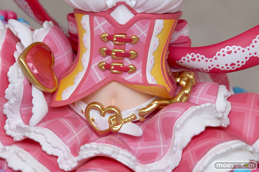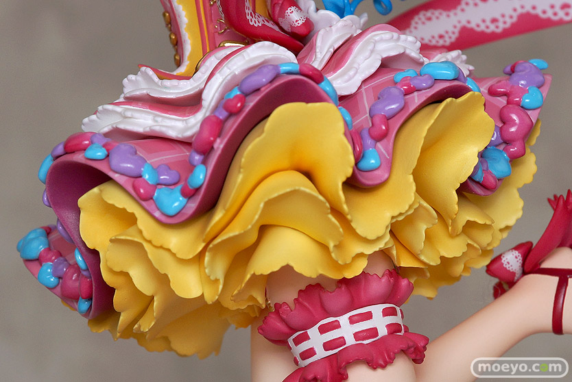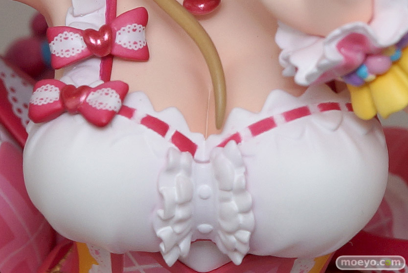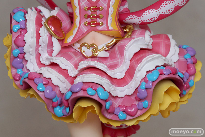 あみあみの新作美少女フィギュア「アイドルマスター シンデレラガールズ 佐藤心 はぁとトゥハートver.」が予約受付開始!『魔法少女をコンセプトに作られた衣装を忠実に再現。スカートに並ぶ小さなハート、手に持っているステッキ風のマイクなど、細部に至るまで丁寧に表現しています。今にも駆け出しそうなポージングやたなびくリボン、何層にも重なったフリルのダイナミックさにもご注目ください。』というもので、原型制作は株式会社イクリエさん。制作協力は株式会社ピーエムオフィスエーさん。その最新のサンプルを見せて頂けましたので、画像レビューとしてお伝えします!