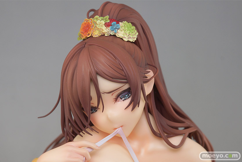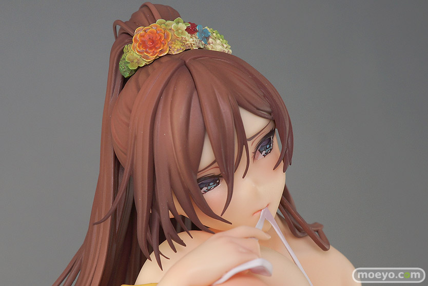 FROGの新作エロフィギュア「あなたと花火を… 桐原楓花」が予約受付中!『コミックバベルの表紙を飾った、人気作家「ぴょん吉」氏の浴衣美少女イラストを1/6サイズで完全フィギュア化。はだけた浴衣の隙間から覗く豊満な肉体と、艶やかで流れるような髪の毛、また涼しげなラムネ瓶等装飾品の数々まで、ぴょん吉氏に幾度も監修頂き、細部まで忠実に再現いたしました!』というもので、原型制作はマッカラン24さん。たわわに実ったおっぱいの柔らかな造形も素晴らしく、帯で隠れたあの部分もしっかりとMOLO造形となっています!その最新の彩色サンプルを見せて頂けましたので、画像レビューとしてお伝えします!(アダルトフィギュアとなります!18歳未満の方は閲覧をお控えください。)