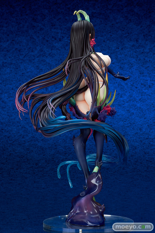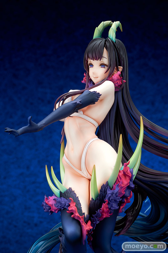コミック「姉なるもの」から、主人公 夕の前に現れた異形の者「千夜」を立体化! 思わず見とれる妖艶な玉体と、幾重にも重なる髪のうねりのコントラストは圧巻です。そして髪から変化し、透明な触手と化す流れの美しさ・・・黒山羊を彷彿とさせる角や蹄・・・禍々しい台座と、異形を感じさせる部位にも渾身の造形を施しました。みなさんも悪魔の「お姉ちゃん」と、一緒に暮らしてみませんか。