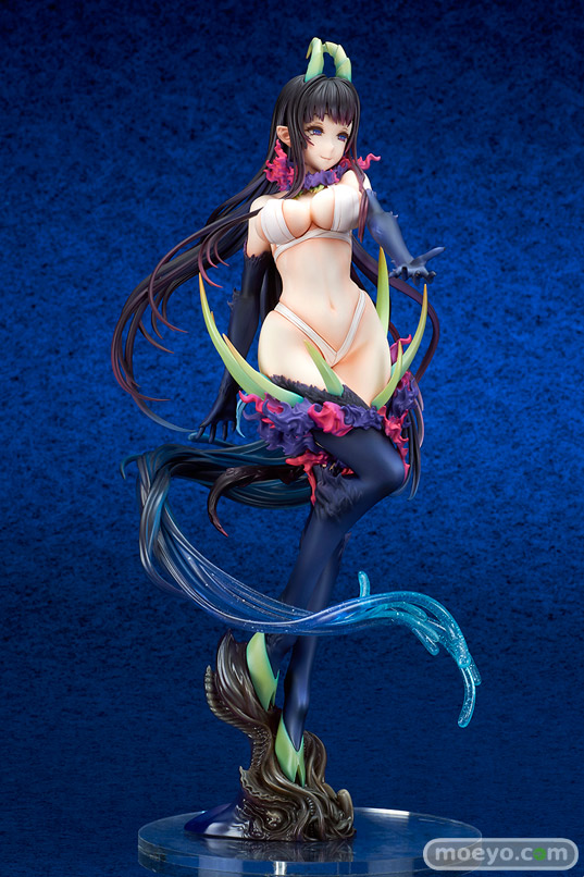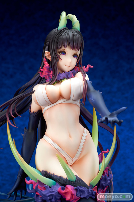 キューズQの新作美少女フィギュア「姉なるもの 千夜」が予約受付開始!『思わず見とれる妖艶な玉体と、幾重にも重なる髪のうねりのコントラストは圧巻です。そして髪から変化し、透明な触手と化す流れの美しさ・・・黒山羊を彷彿とさせる角や蹄・・・禍々しい台座と、異形を感じさせる部位にも渾身の造形を施しました。』というもので、原型制作は毒島孝牧(ブスジマックス)さん。彩色製作はアンドウケンジさん。そのサンプルの様子を画像レビューとしてお伝えします!