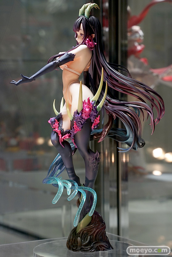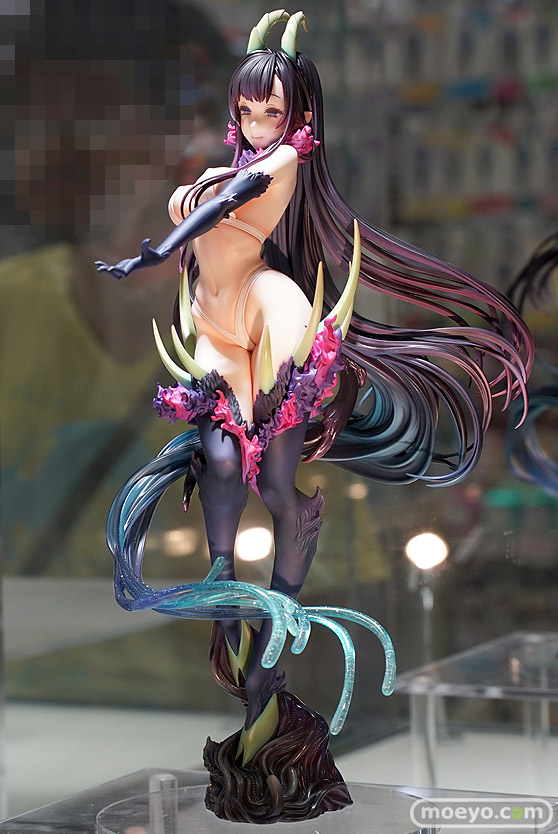 キューズQの新作美少女フィギュア「姉なるもの 千夜」の彩色サンプルが、あみあみ 秋葉原ラジオ会館店で展示!『思わず見とれる妖艶な玉体と、幾重にも重なる髪のうねりのコントラストは圧巻です。そして髪から変化し、透明な触手と化す流れの美しさ・・・黒山羊を彷彿とさせる角や蹄・・・禍々しい台座と、異形を感じさせる部位にも渾身の造形を施しました。』というもので、原型制作は毒島孝牧(ブスジマックス)さん。彩色製作はアンドウケンジさん。その展示の様子を画像レビューとしてお伝えします!