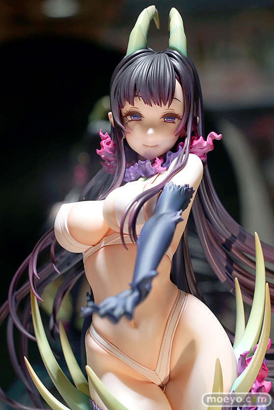 コミック「姉なるもの」から、主人公 夕の前に現れた異形の者「千夜」を立体化! 思わず見とれる妖艶な玉体と、幾重にも重なる髪のうねりのコントラストは圧巻です。そして髪から変化し、透明な触手と化す流れの美しさ・・・黒山羊を彷彿とさせる角や蹄・・・禍々しい台座と、異形を感じさせる部位にも渾身の造形を施しました。みなさんも悪魔の「お姉ちゃん」と、一緒に暮らしてみませんか。