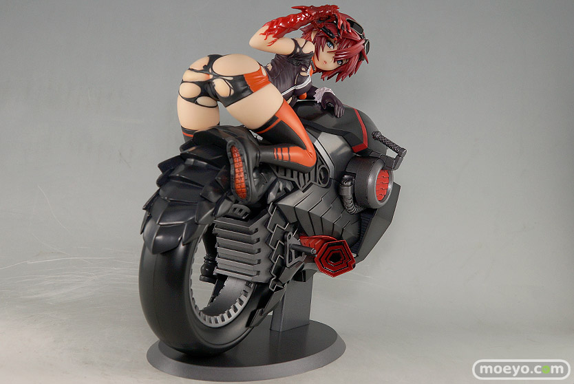 細部まで拘ったハイクオリティなバイクに跨り振り向き様に魅せる虚ろげな視線、デモニアック化した右手や破れたスパッツに食い込む肉感的なお尻などに釘付けになること間違いなし。