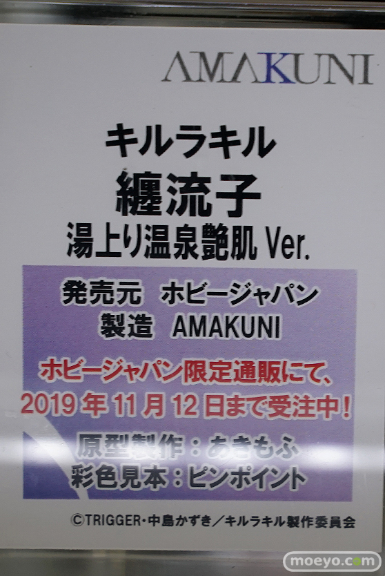 「纏流子 湯上り温泉艶肌 Ver.」「夜刀神十香 反転 ver.」「戦場ヶ原ひたぎ」など 秋葉原の新作フィギュア、グッズ展示の様子01(2019年10月4日)2019年10月4日の秋葉原の新作、製品版フィギュア、グッズ展示の様子を、数が多いので2回に分けて画像レビューとしてお伝えします!こちらでは画像の「キルラキル 纏流子 湯上り温泉艶肌 Ver.」や「シア・ハウリア」「艦これ 照月」「夜刀神十香 反転 ver.」「トガヒミコ」「等身大ライザ」「島田愛里寿 ボコパジャマ Ver.」「アズールレーン 赤城/加賀」「戦場ヶ原ひたぎ」「千代田桃」「シャドウミストレス優子」など、「あみあみ 秋葉原ラジオ会館店」「コトブキヤ秋葉原館」の展示の様子を。
