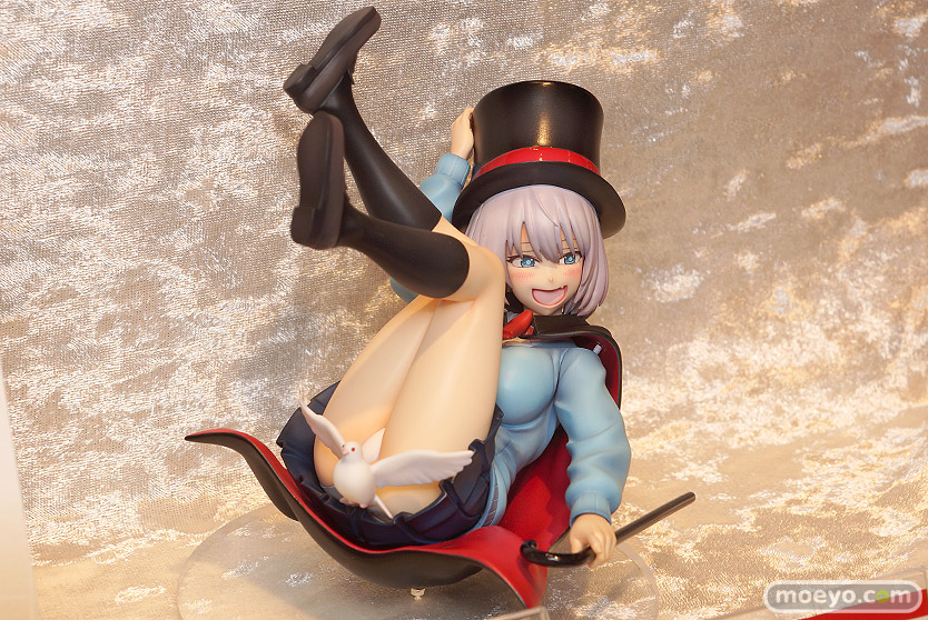 コトブキヤの新作美少女フィギュア「手品先輩 先輩」の彩色サンプルが、「第11回カフェレオキャラクターコンベンション」の会場で展示!『コンパクトなサイズ感で飾れるように仕上げつつ、先輩らしさを出すためにスカートからはハトが飛び出したりと大胆なポージングに見えるよう構成。冬制服に着用しているエメラルドグリーン色のニットは全体の雰囲気が明るくなるよう色鮮やかに着色し、マントやスカートとのメリハリを出すよう仕上げました。』というもので、シルクハットは取り外しが可能!原型制作は片桐ヨウヘイさん。製作協力はコトブキヤさん。その展示の様子を画像レビューとしてお伝えします!