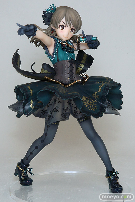 あみあみの新作美少女フィギュア「アイドルマスター シンデレラガールズ 森久保乃々 ギフト・フォー・アンサーver.」が予約受付中!『腕と足を大きく広げた、迫力あるポージングでの立体化です。胸元のカギ型ネックレスや腰のチェーンなど、衣装の細かいパーツも忠実に再現。ゲーム内イラストをもとに統一感を重視したカラーリングになっています。髪飾りやスカートには一部クリアパーツを使用し、レース素材の透明感を表現しました。鋭く光る眼光はしっかりとこちらを見据えており、ドヤ顔が存分に楽しめます。』というもので、原型制作は千鶴(鶴の館)さん。色彩設計はまいもっち(鶴の館)さん。その最新の彩色サンプルを見せて頂けましたので、画像レビューとしてお伝えします!