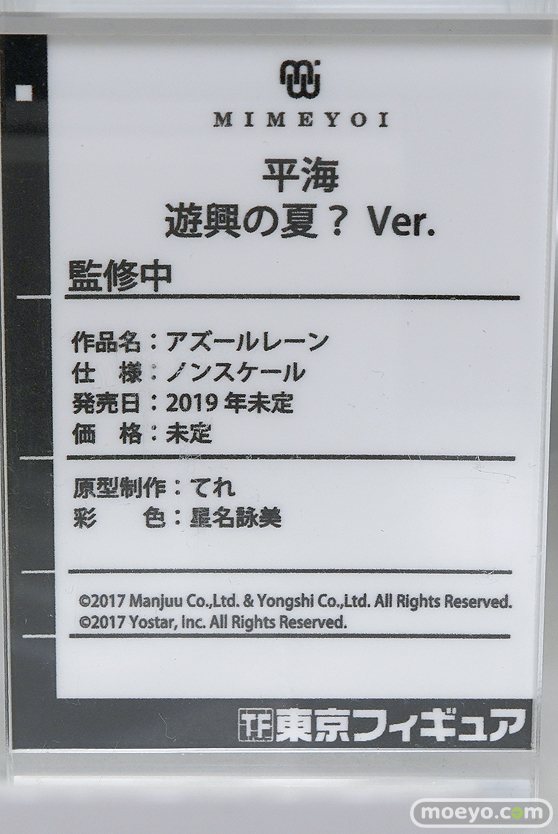 MIMEYOIの新作美少女フィギュア「アズールレーン 平海 遊興の夏? Ver.」の監修中原型が、「2019夏 ホビーメーカー合同展示会」の会場で展示!かわいらしくも布地面積少なめな水着姿での立体化で、原型制作はてれさん。彩色は星名詠美さんが担当されています!その展示の様子を画像レビューとしてお伝えします!