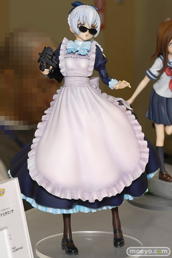 予約開始されたばかりのファット・カンパニーの新作美少女フィギュア「フルメタル・パニック! Invisible Victory テレサ・テスタロッサ メイドVer.」の彩色サンプルが、「宮沢模型 第44回 商売繁盛セール」の会場で展示!『『フルメタル・パニック! Invisible Victory』よりオーディオドラマ“踊るベリー・メリー・クリスマス”メインビジュアルで印象的な「テレサ・テスタロッサ」のメイド服姿を再現。おさげ髪をなびかせた振り返りポーズに、右手に携えたP90も精密に造型。サングラスは取り外しが可能ですので、素顔のテッサもお楽しみいただけます。』というもので、原型制作は山口祐幸(Phat!)さん。彩色は林晃平(Phat!)さん、山口祐幸(Phat!)さん。その展示の様子を画像レビューとしてお伝えします!