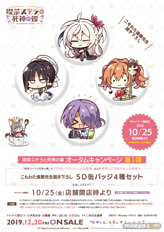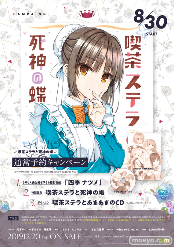 ■ タイトル名:「喫茶ステラと死神の蝶」 ■ ブランド名:ゆずソフト ■ ジャンル:ADV ■ 年齢制限:18禁 ■ 対応OS:Windows7/8/10 ■ メディア:DVD-ROM ■ 価格:8,800円+税 ■ 発売:19年12月20日(金) |