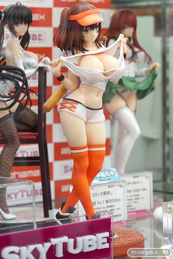 発売されたばかりのスカイチューブ新作フィギュア「野球娘 illustration by 魔太郎」のおそらく製品版同等と思われるPVCサンプルが、秋葉原のボークスホビー天国で展示!!『破れたユニフォームから覗くウィニングボールや、グランドスラムの如きアーチを描いた豊満なヒップははち切れんばかりのメジャーリーグ級!一流アスリートを思わせる引き締まった腹筋や、アイブラックなど、キュートながらもワイルドな魅力から目が離せない『野球娘』。』というもので、原型制作は2%さん。キャストオフでおっぱい&股間丸出し状態も可能!その展示の様子を画像レビューとしてお伝えします!(アダルトフィギュアとなります!18歳未満の方は閲覧をお控えください。)