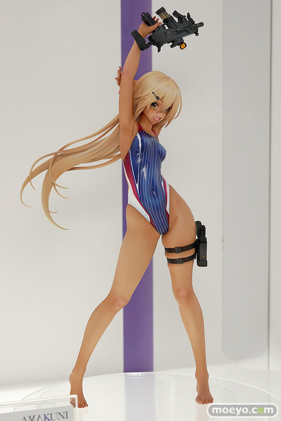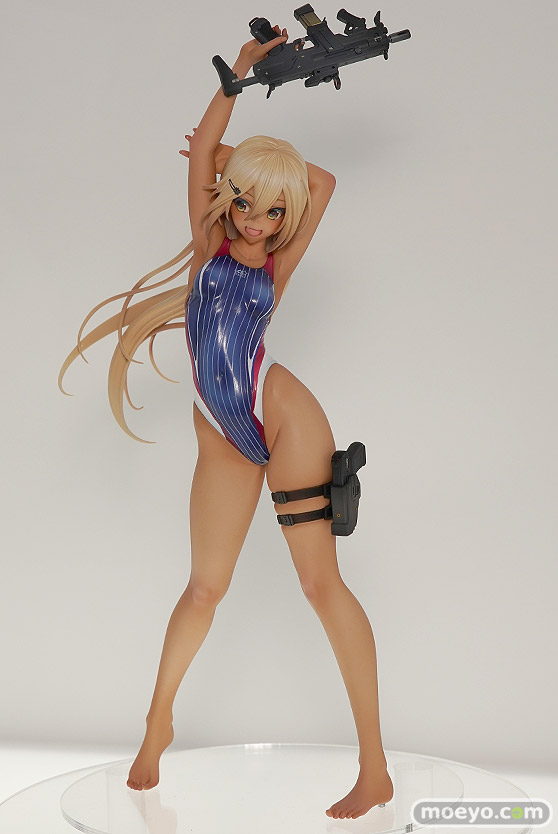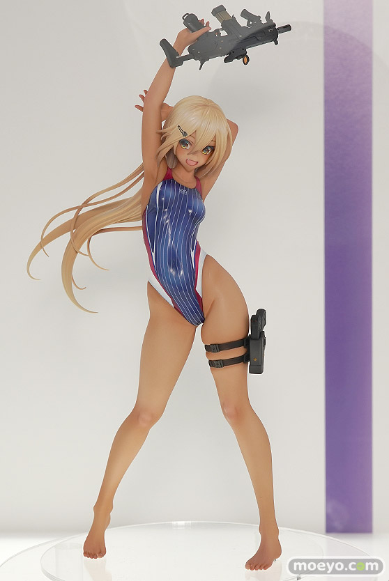 ホビージャパンの新作美少女フィギュア「ARMS NOTE 水泳部のコウハイちゃん」が予約受付開始!『プールサイドでストレッチをしている場面をイメージし立体化。水泳部らしく鍛えられた美しい肢体、ひねりのある健康的なボディラインを意識し造形。特徴的な競泳水着や武器はもちろん、日焼けした美しい小麦肌も抜かりなく再現し、コウハイちゃんの魅力を追求いたしました。』というもので、お肌部分は「Smooth Skin」加工ですべすべ!原型制作はi-con(藍色空色)さん、銃器製作はにゃばーさん。彩色見本製作は五日市歩さん。製造はAMAKUNIさん。「メガホビEXPO 2019 Autumn」で展示されていた彩色サンプル展示の様子を画像レビューとしてお伝えします!