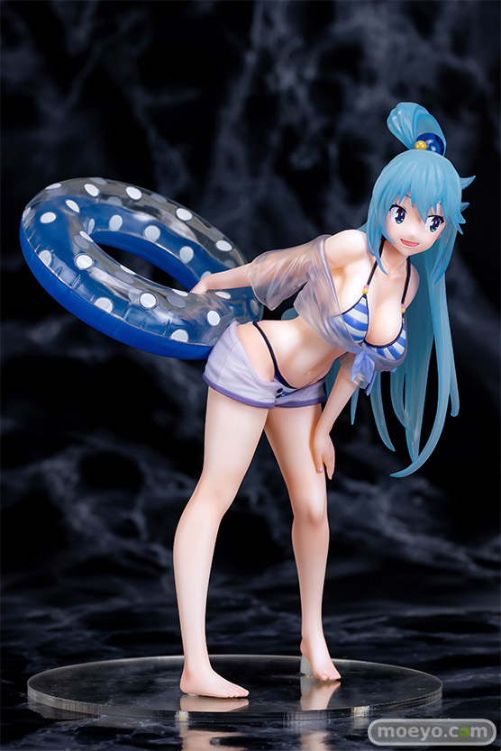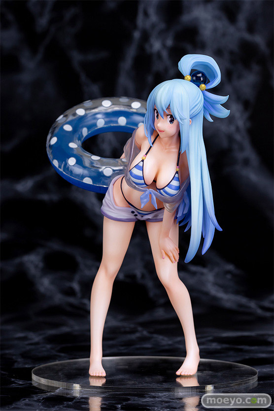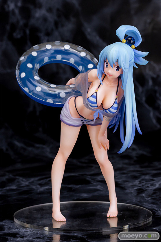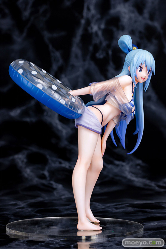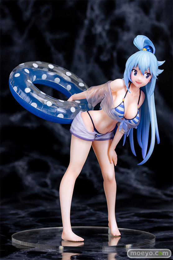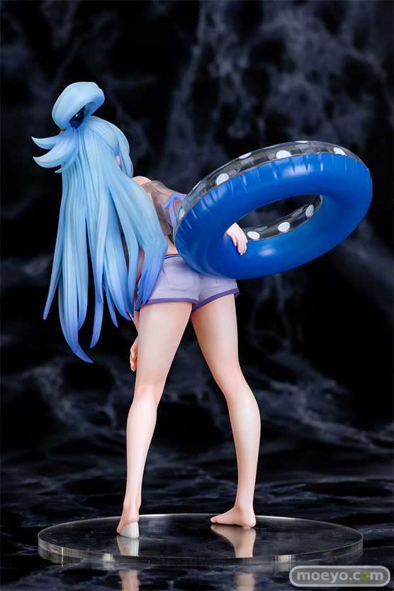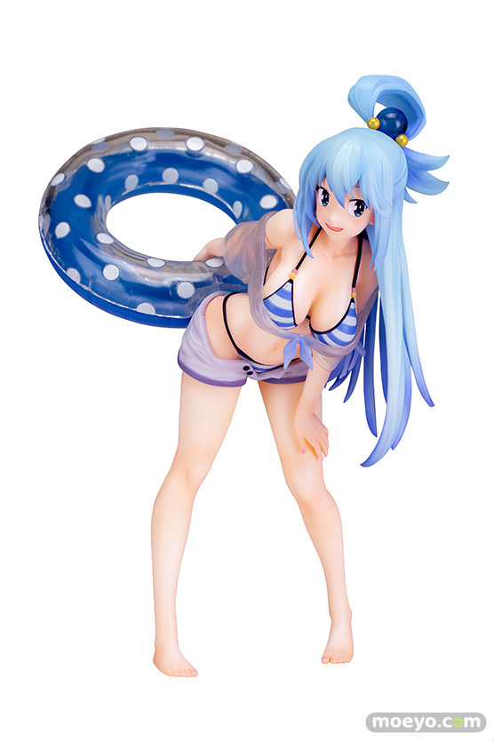「映画 この素晴らしい世界に祝福を!紅伝説」より女神「アクア」が水着姿で登場!大きな浮き輪を片手に少し屈んだポージングが魅力的。アクアらしいブルーのボーダー柄ビキニに透明素材のラッシュガードを結んだお洒落なデザイン!緩めに穿いたショートパンツからチラリと見えるビキニがセクシーです。ビニールや布といった質感の微妙な違いはクリアパーツや塗装にて表現。清涼感溢れる「アクア」を是非お迎えしてみませんか。【B´full FOTS JAPAN(ビーフル フォトス ジャパン)】