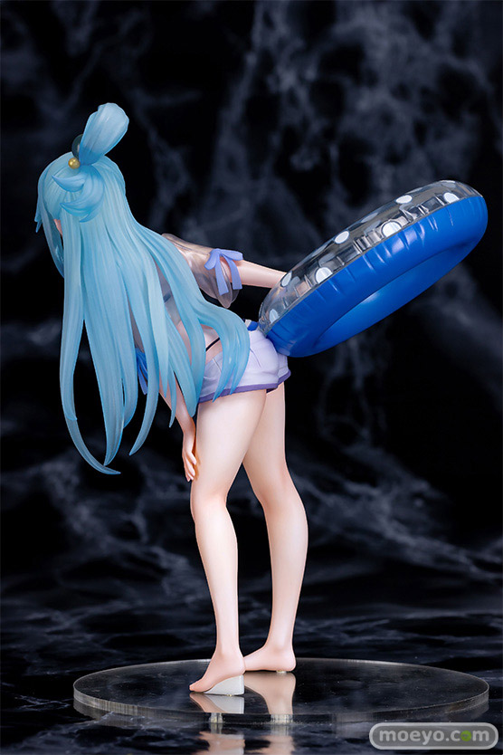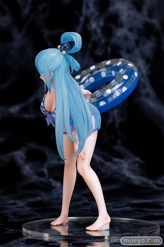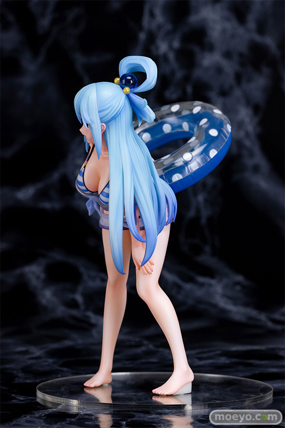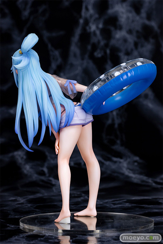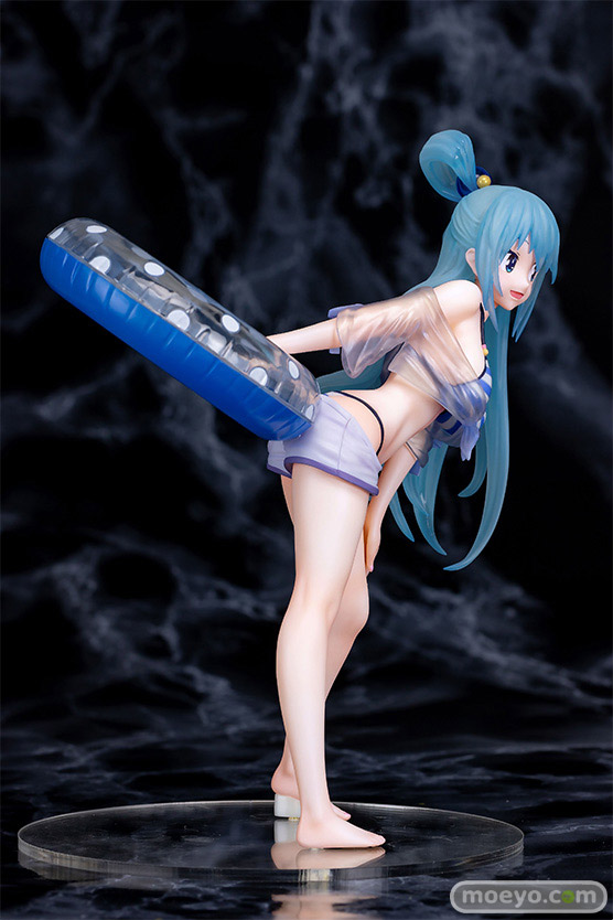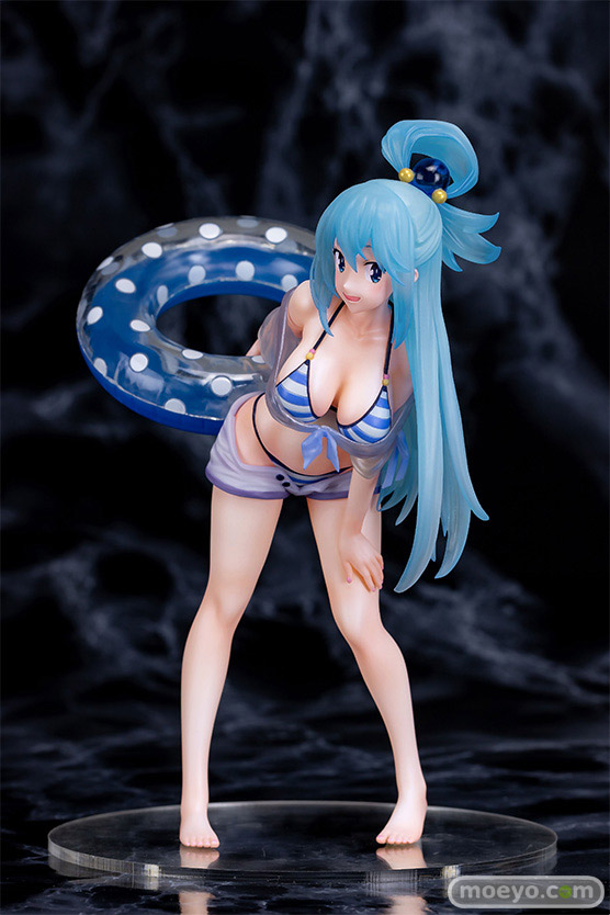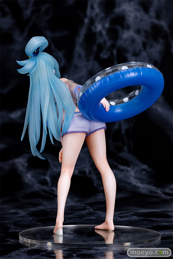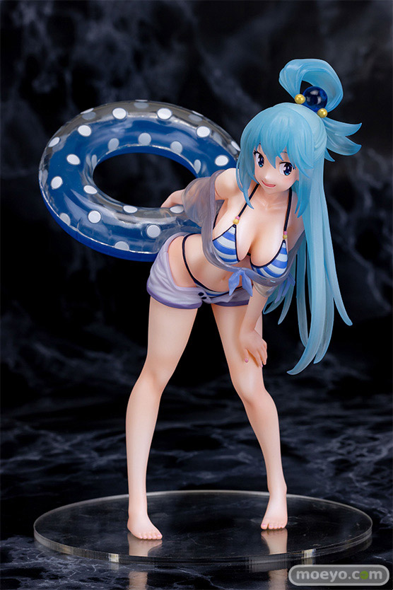「映画 この素晴らしい世界に祝福を!紅伝説」より女神「アクア」が水着姿で登場!大きな浮き輪を片手に少し屈んだポージングが魅力的。アクアらしいブルーのボーダー柄ビキニに透明素材のラッシュガードを結んだお洒落なデザイン!緩めに穿いたショートパンツからチラリと見えるビキニがセクシーです。ビニールや布といった質感の微妙な違いはクリアパーツや塗装にて表現。清涼感溢れる「アクア」を是非お迎えしてみませんか。【B´full FOTS JAPAN(ビーフル フォトス ジャパン)】