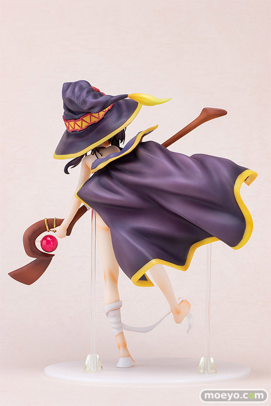 「映画 この素晴らしい世界に祝福を!紅伝説」より紅魔族の天才魔法使い「めぐみん」が水着姿で登場!いかにも魔法使いらしい帽子とマントが特徴的。可愛らしい笑顔と幼い体型をこだわりの造形にて表現いたしました!靡くマントは丁寧に作りこまれた皺と塗装により動きを表現。細かい装飾や質感の違いにご注目の逸品です!是非手に取って細部の造形をお楽しみください!【B´full FOTS JAPAN(ビーフル フォトス ジャパン)】