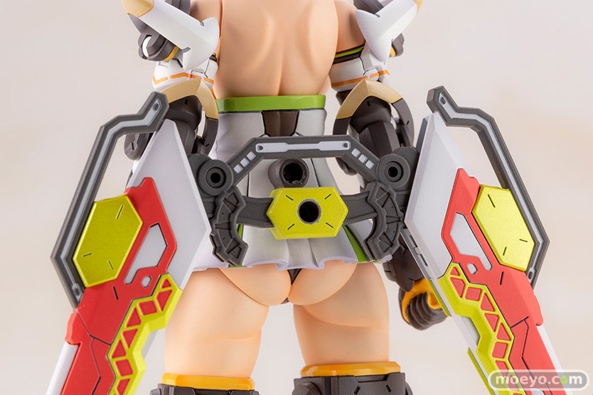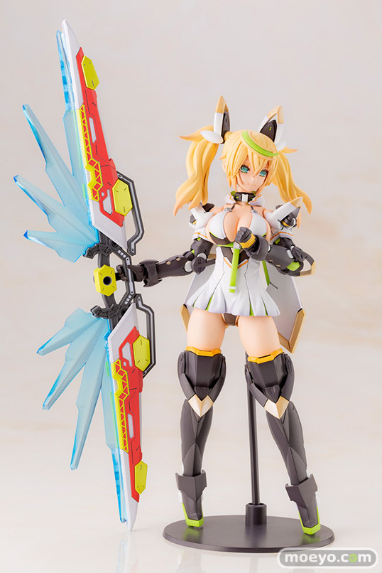 そのほか、3種の新規表情パーツ、衣装デザイン変更に伴う可動性の向上により、ゲーム中の様々なイラストのポーズをお楽しみいただけます。そして、プラモデルならではのオリジナルギミックとして、『ジェネ』のキャラクターデザインを担当された『Nidy-2D-』氏が同じくデザインしたメガミデバイス『朱羅 忍者』『朱羅 弓兵』とは、一部互換性があり、プラモデルとしての遊びの幅が大きく広がります。